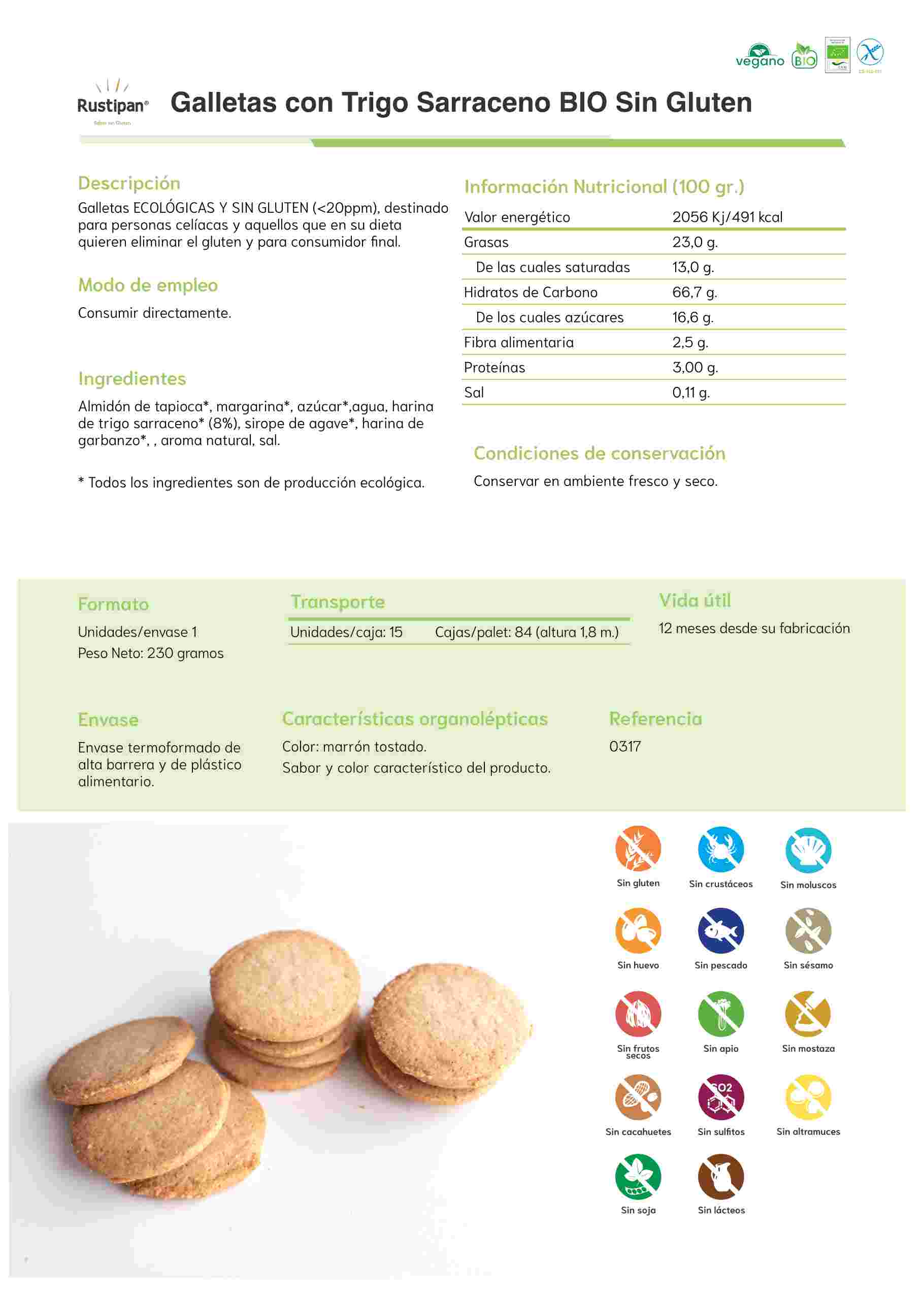 Galletas ECOLÓGICAS SIN GLUTEN (<20ppm) libre de alérgenos (huevo, leche, soja, frutos secos..) según el Reg 1169/2011 (ver tabla de alérgenos) y SIN TRANSGÉNICOS destinado para personas celiacas y aquellos que en su dieta quieren eliminar el gluten y para consumidor final.